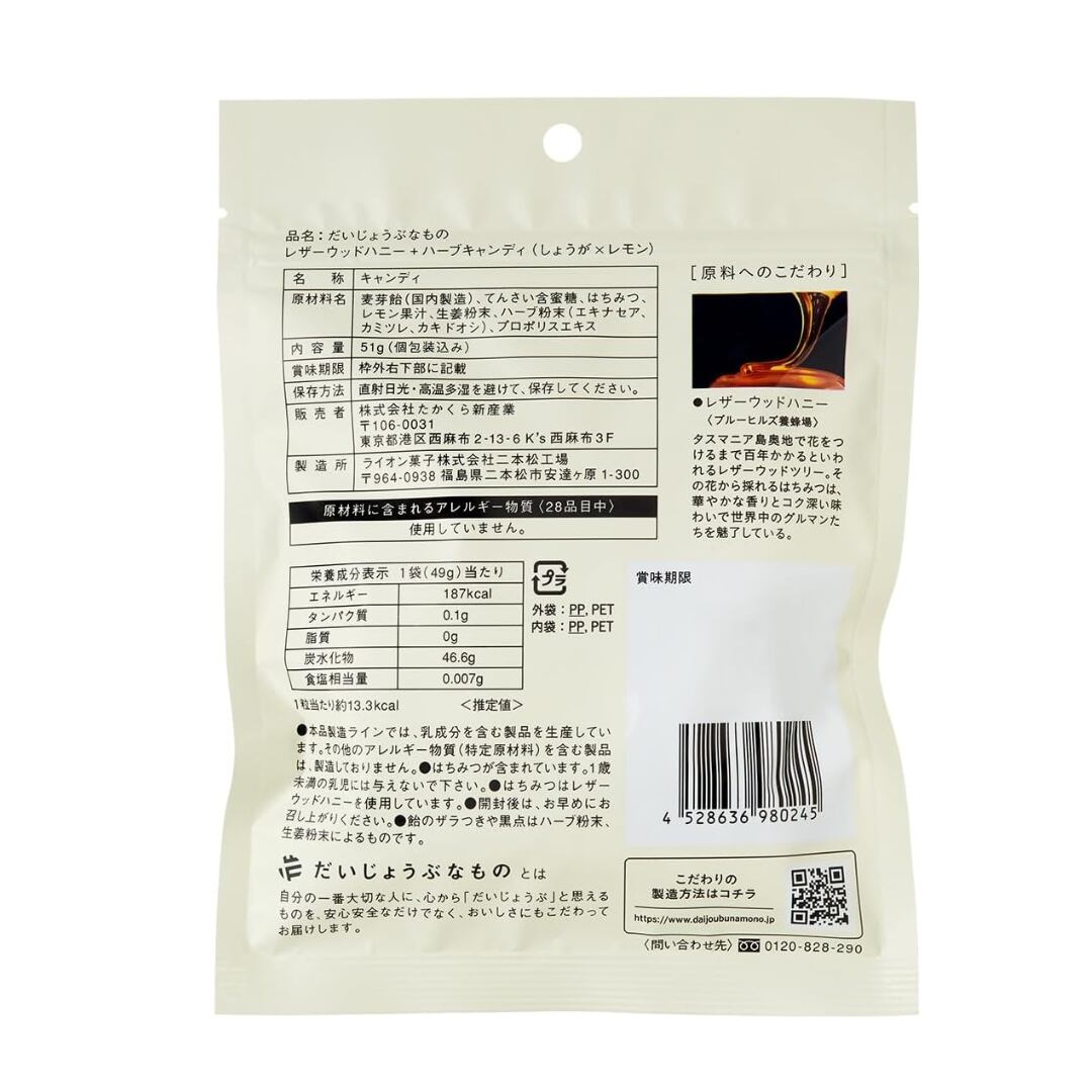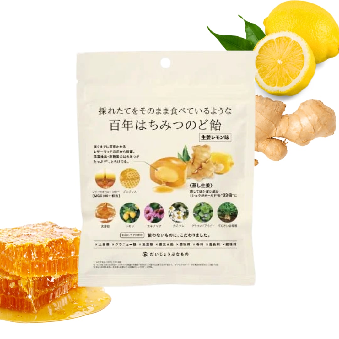 百年はちみつのど飴(レザーウッドハニー + ハーブキャンディ)<生姜レモン味>