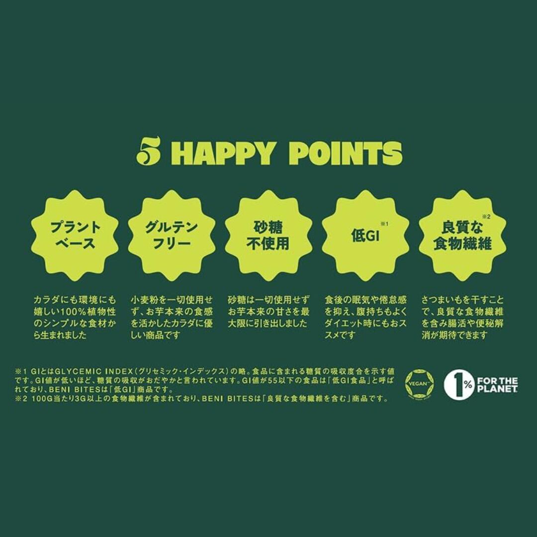●5つのハッピーポイント プラントベース、グルテンフリー、砂糖不使用、低GI、良質な食物繊維で腸活◎